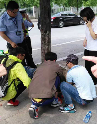 今日14点10分左右,杭科院校门口发生一起交通事故,一名50岁左右大叔血流不止,学院机电党员学生储玲蕾等6名同学火速施救并报警。伤者已送往医院。