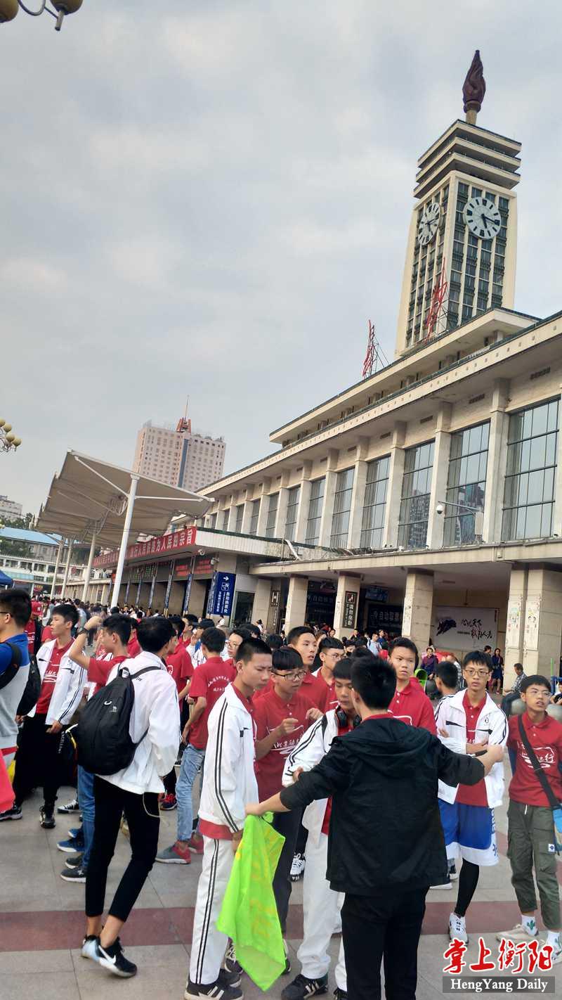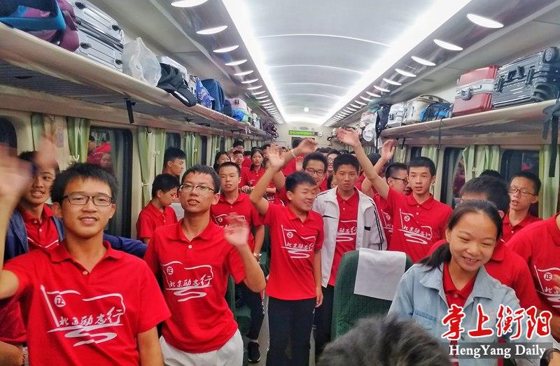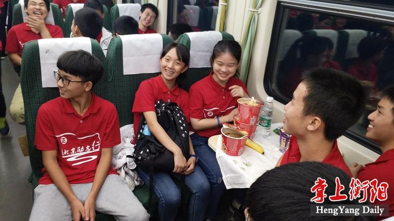 下了车,同学们争相扛行李和成件的矿泉水,走了一陈阵,就会有同学去主动“接力”……赶火车时出现了一个小插曲:两台大巴司机称不能在火车站旁边停车下客,他们将车开到离火车站1公里的地方下客,师生们扛着行李赶到火车站时,离火车开车时间只有十分钟了。一百多名学生听从指挥,扛着行李往火车上飞奔,当最后一名学生冲进车厢,火车徐徐开动了。在车上,记者问同学们为什么扛着东西还那么能跑?同学们说,平时学校每天都要跑操,还经常练拳,每学期还有几十公里的远足活动,再加上大家在学校都是吃自助餐,个个身体棒棒的,这点“短跑”对他们来说是小菜一碟!