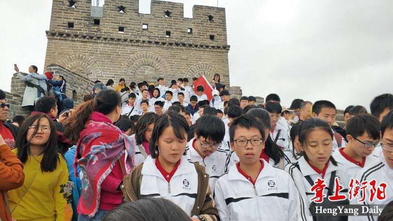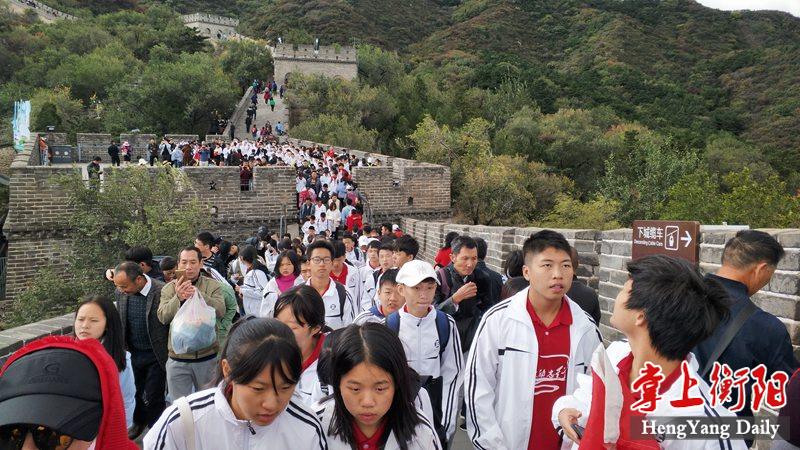 9月30日清晨,秋高气爽,蓝蓝的天空漂着几朵白云。上午6时,励志团队走出宾馆,乘地铁转S2专线列车奔向目的地长城。他们里穿“正源红”T恤杉,外着一身洁白的校服,在车上和大街上都显得格外耀眼。