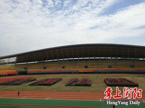 掌上衡阳客户端10月1日讯 衡阳师范学院的大一新生,通过军训队形的变化拼出“祝福祖国”“2018”几个大字,庆祝中华人民共和国成立69周年。