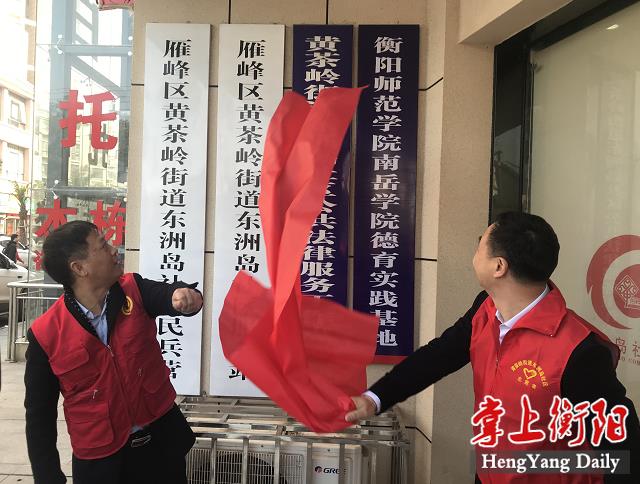 掌上衡阳客户端雁峰频道3月12日讯(记者 周连武) 今日上午,衡阳师范学院南岳学院与东洲岛社区共建的德育实践基地举行挂牌仪式。衡阳师范学院南岳学院德育实践基地的建立将助力大学生开展德育实践,积极投身到“衡阳群众”中来,为创建全国文明城市贡献力量。