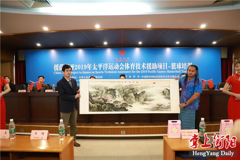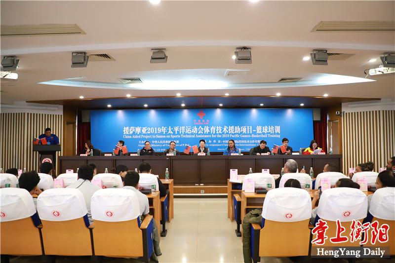 掌上衡阳客户端3月18日讯(记者 向吟吟 通讯员 曾朝阳 徐罗月 任亚琳) 今日上午,“萨摩亚国家篮球运动队培训”项目在衡阳师范学院举行开班仪式,该项目是国家商务部“援萨摩亚2019年太平洋运动会体育技术援助项目”的一部分。受商务部的委托,衡阳师范学院作为该项目的承办方,将为萨摩亚国家篮球队开展为期3个月的篮球技术指导与训练。