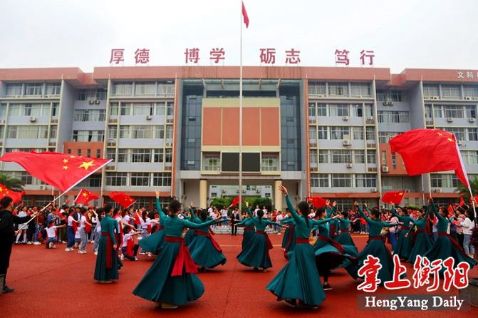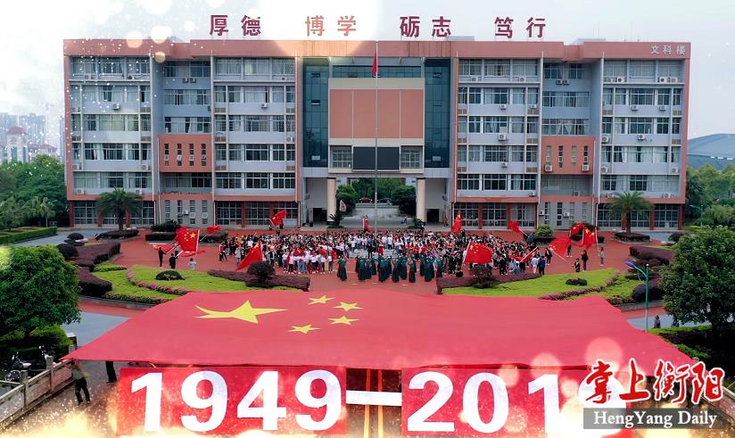 “我和我的祖国,一刻也不能分割。无论我走到哪里,都流出一首赞歌……”视频中,衡阳师范学院师生聚集在文科楼前的红旗广场,唱响《我和我的祖国》。