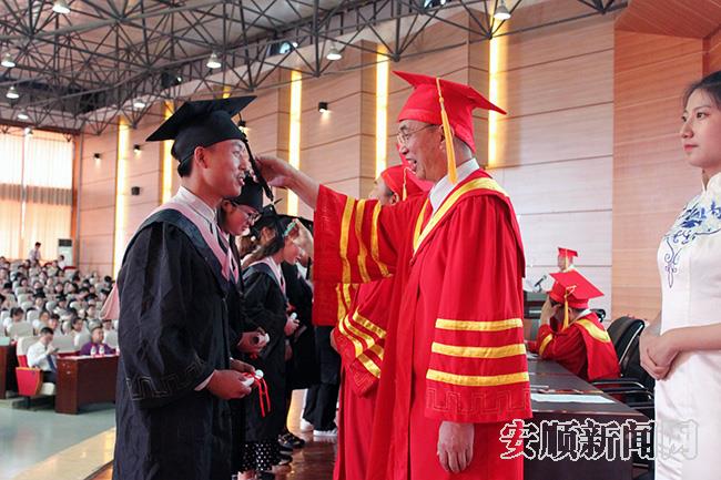 毕业典礼上宣读了《安顺学院2019年省、校级优秀毕业生名单》,并为其颁奖;宣读了《安顺学院2019届获位名单》,举行了学位授予仪式,吴次南向获得学士学位的毕业生逐一颁发学士学位证书,各二级学院院长组成授位团分批拨穗。(安顺日报社大数据智慧全媒体记者 桂传念)