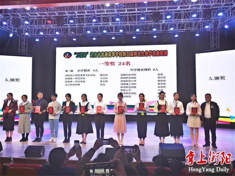 其中,衡阳师范学院吴秀青、代晓雨、欧丹荣获中学文科教育组一等奖,易佳慧、朱智勇、龚钰棋荣获中学理科教育组一等奖;刘添帅荣获中学文科教育组二等奖,杨文龙、雷超娟荣获中学理科教育组二等奖;王悦媛荣获学前教育组三等奖,王孟琳、罗丹荣获中学理科教育组三等奖。此外,学校还获评优秀组织奖。