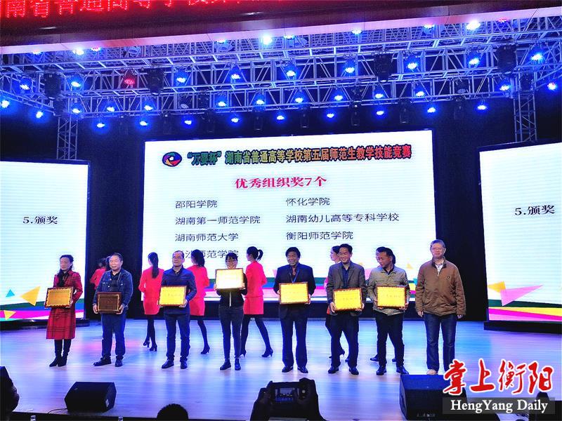 掌上衡阳客户端衡阳师院频道10月27日讯(记者翟瑜 通讯员曾朝阳) 10月26日晚,由湖南省教育厅主办的“万婴杯”湖南省普通高等学校第五届师范生教学技能竞赛在衡阳师范学院东校区落幕,衡阳师范学院学子取得了一等奖6个、二等奖3个、三等奖3个的优异成绩。此外,该校还荣获优秀组织奖。