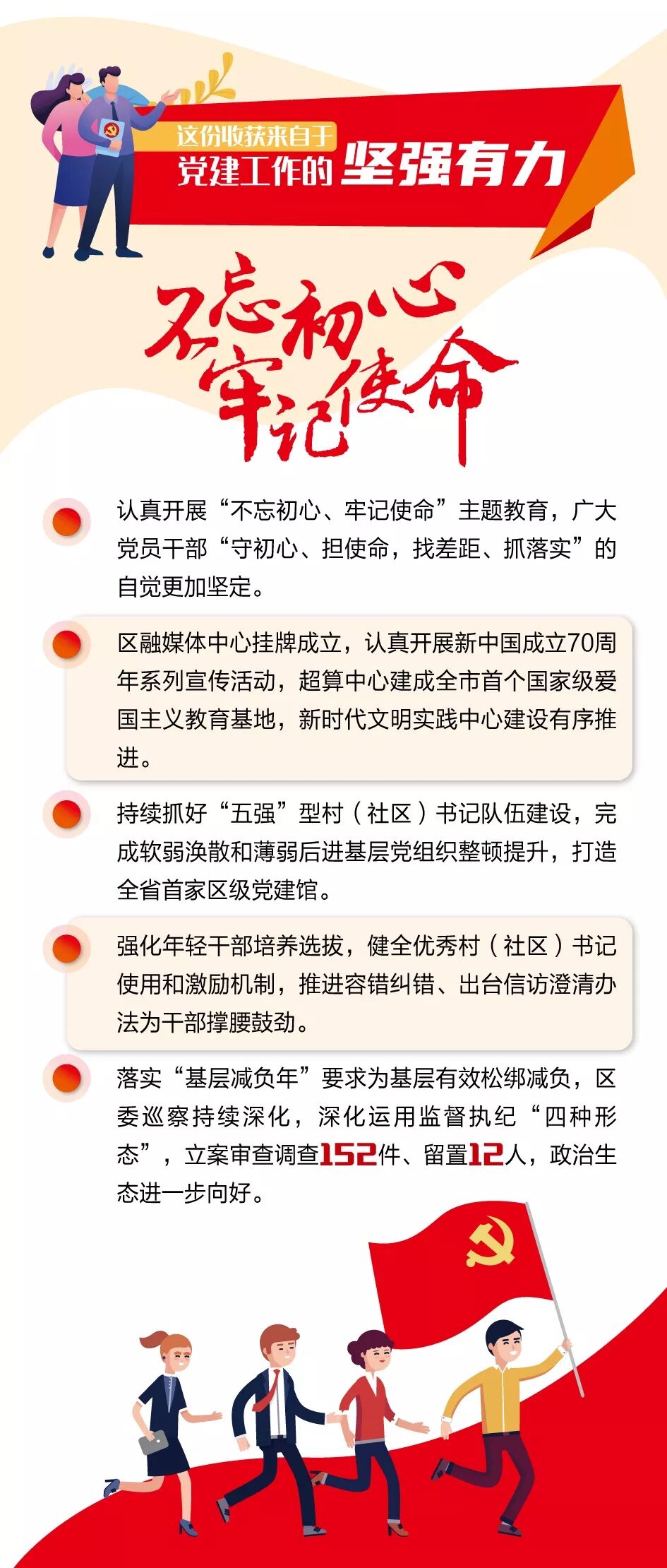 ★突出基层党组织的政治功能,持续提高基层党建工作整体水平。党的基层组织是党的各项工作落实的基础,必须把抓基层打基础作为长远之计和固本之举,推动基层党建提质增效。要全面夯实基层“战斗堡垒”。要全面配强基层“带头人”。要全面推动各领域党建“齐头并进”。