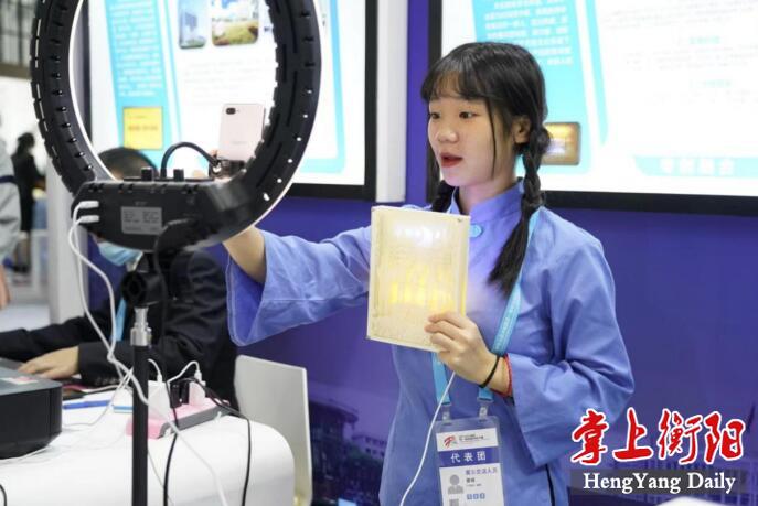 学院参展项目是平面设计专业学生的创新之作,作为学生创业项目,同时蕴含了蔡伦造纸的“纸”元素和南岳祝融的“火”元素,不仅体现了纸质艺术,也传播了中国文化。人社部党组成员、副部长汤涛连连称赞:“绝技精彩,这些年轻工匠大有可为,大有作为。”