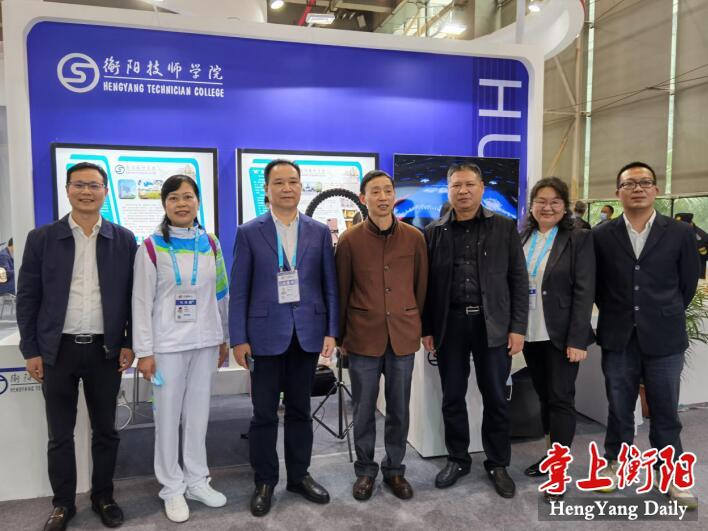 ▲湖南省副省长朱忠明、省人社厅厅长唐白玉、省人社厅副厅长黄赞佳在学院展位观摩指导