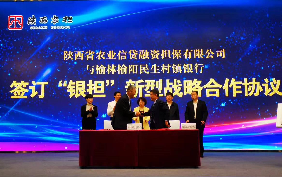 现场,陕西农担公司与榆阳区政府签订“政担”新型战略合作协议,与榆阳民生村镇银行签订“银担”战略合作协议。