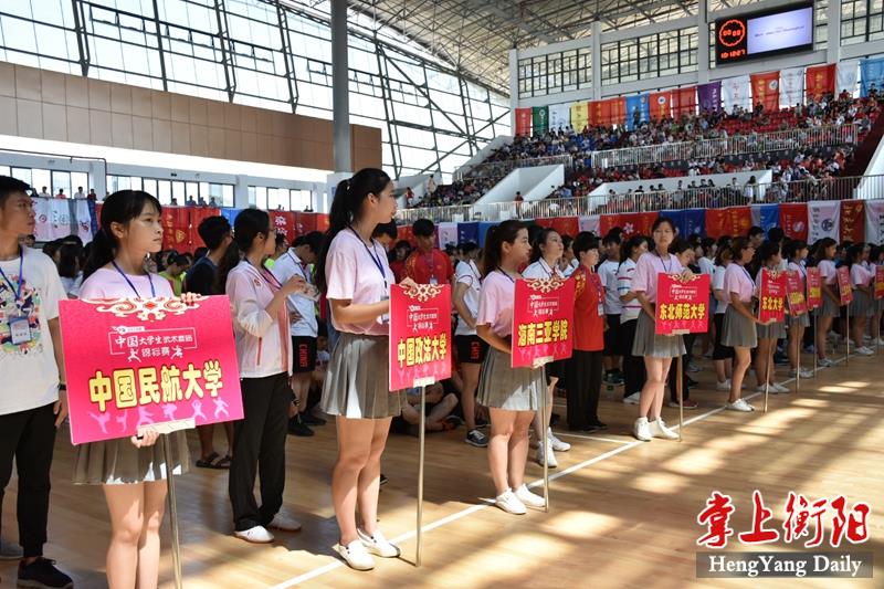 掌上衡阳客户端7月29日讯(文/图 记者 向吟吟) 今日上午,由中国大学生体育协会主办、湖南工学院承办的2018年中国大学生武术套路锦标赛在衡开幕。比赛将持续到8月2日,千余名大学生运动员将分组切磋竞技,大展中国武术魅力。